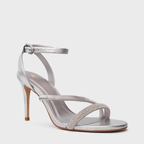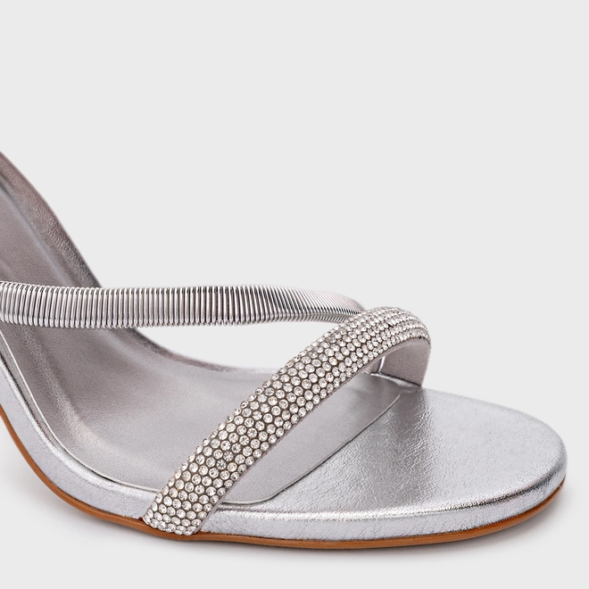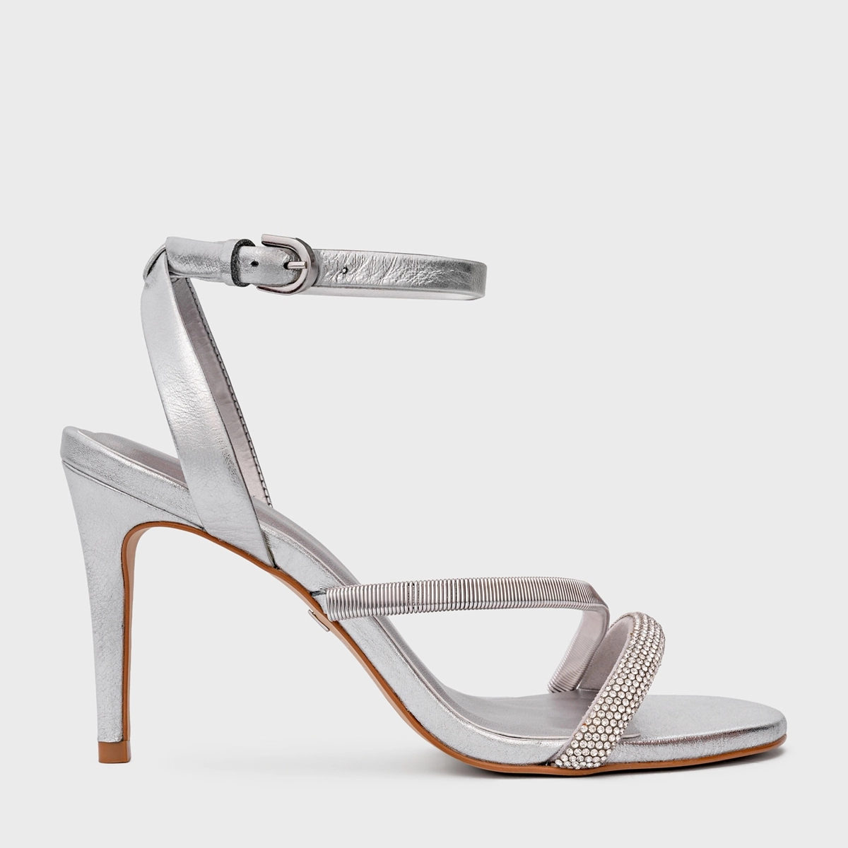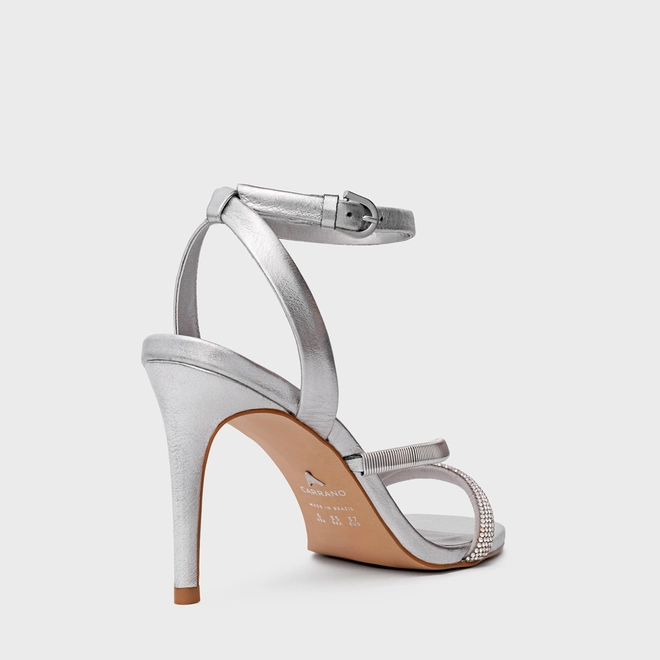 Sandália Cristal Salto Fino Couro Metalizado Prata
