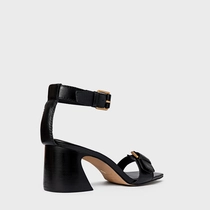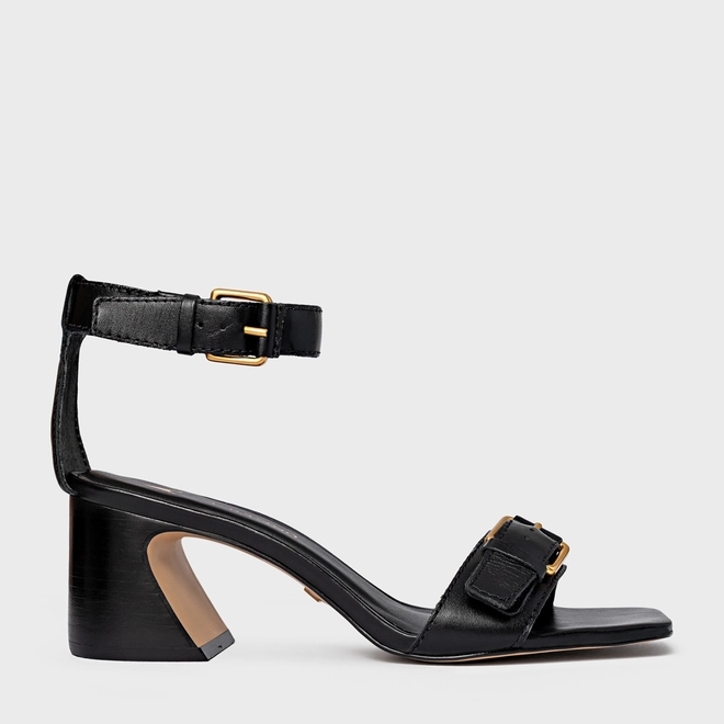 Sandália Detalhe Fivela Salto Wave Couro Preto