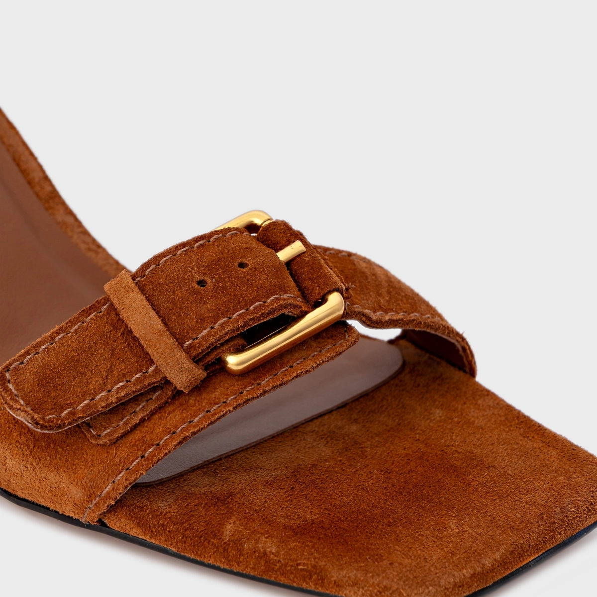Sandália Detalhe Fivela Salto Wave Couro Suede Marrom Ferrugem