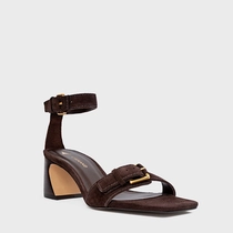 Sandália Detalhe Fivela Salto Wave Couro Suede Marrom Ganache