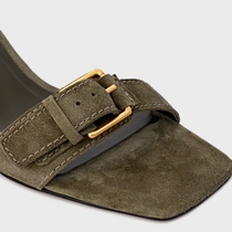 Sandália Detalhe Fivela Salto Wave Couro Suede Verde Army Green