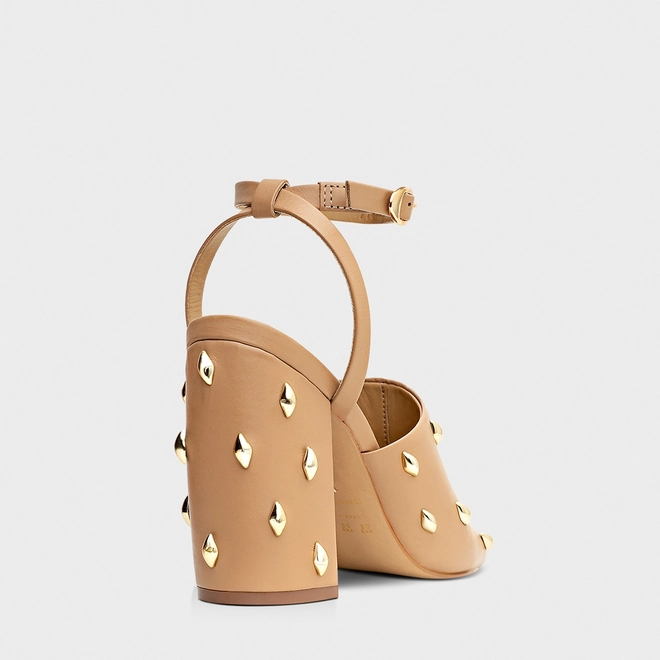 Sandália Drops Salto Bloco Couro Bege Toffee