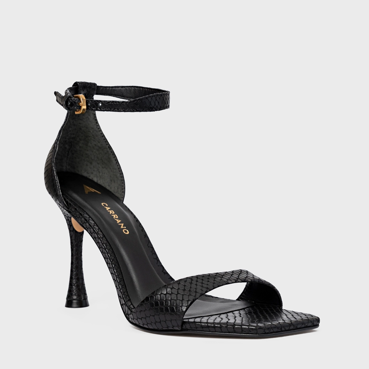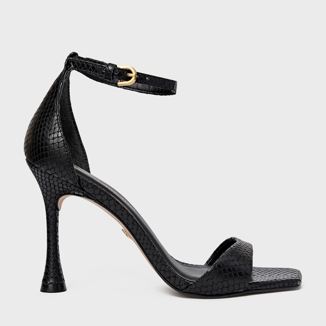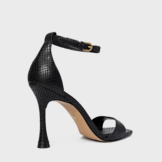 Sandália Eternal Salto Fino Couro Snake Preto