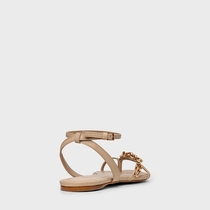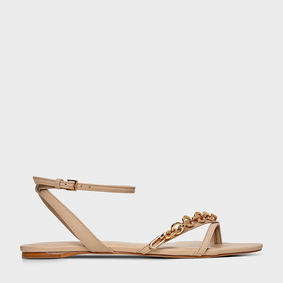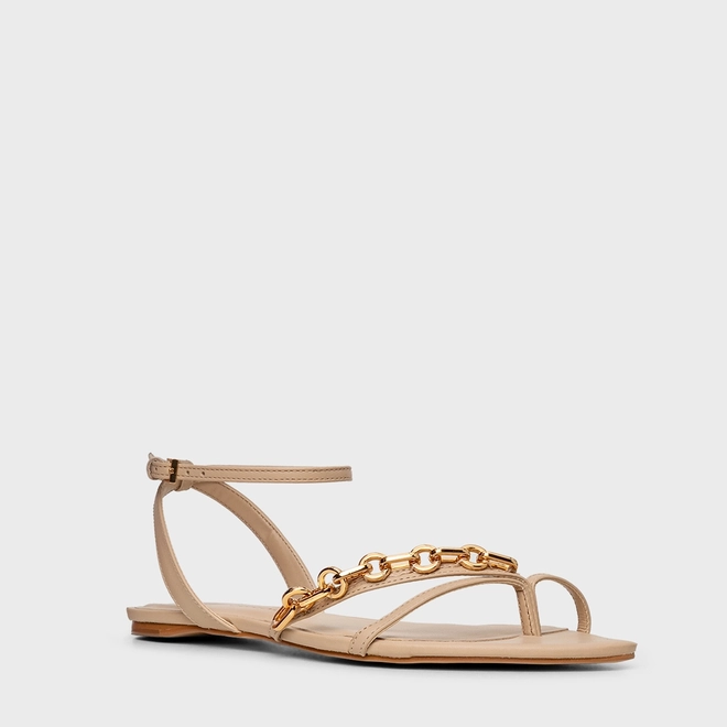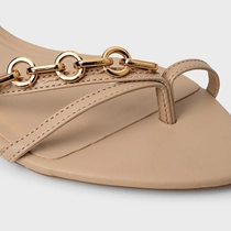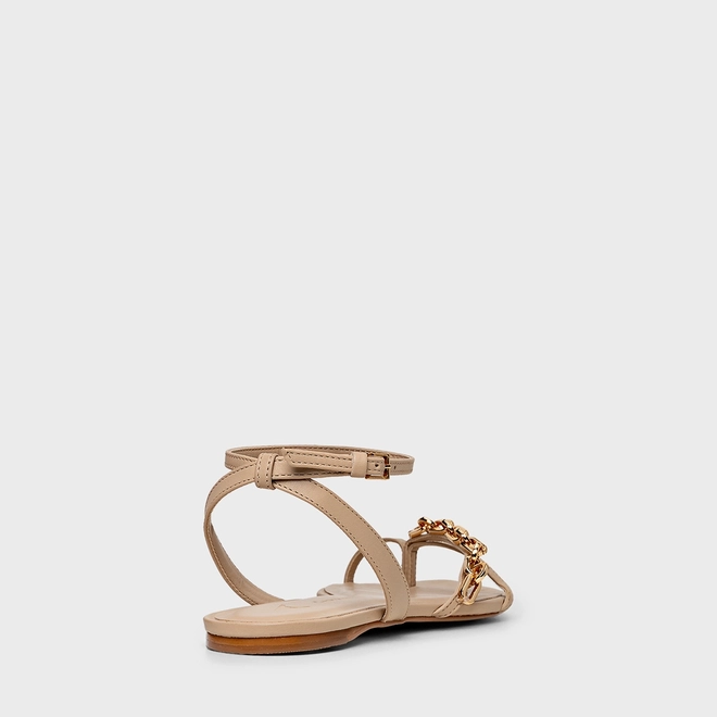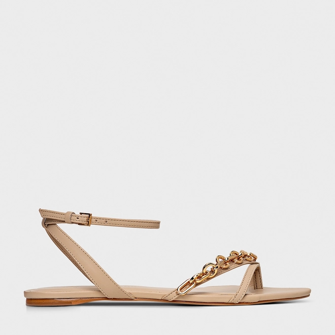 Sandália Flat Chain Bico Folha Couro Bege Ginger