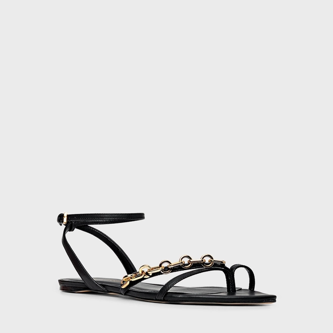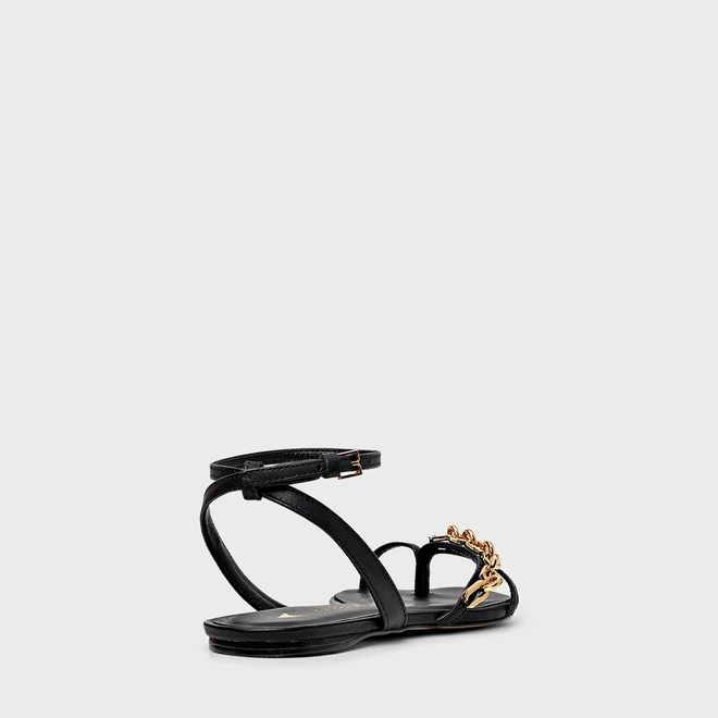 Por que apostar? Uma flat de design ultrafeminino, com tiras delicadas que contrastam com as argolas metálicas no peito do pé, cria um visual único e elegante. Como usar? Experimente com uma blusa de vinil soltinha, calça de alfaiataria e bolsa hobo, super moderna e fashionista.