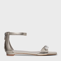 Sandália Flat Cristal Detail Couro Metalizado Champagne