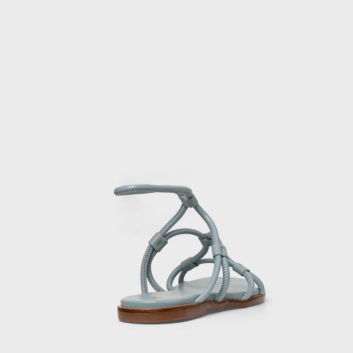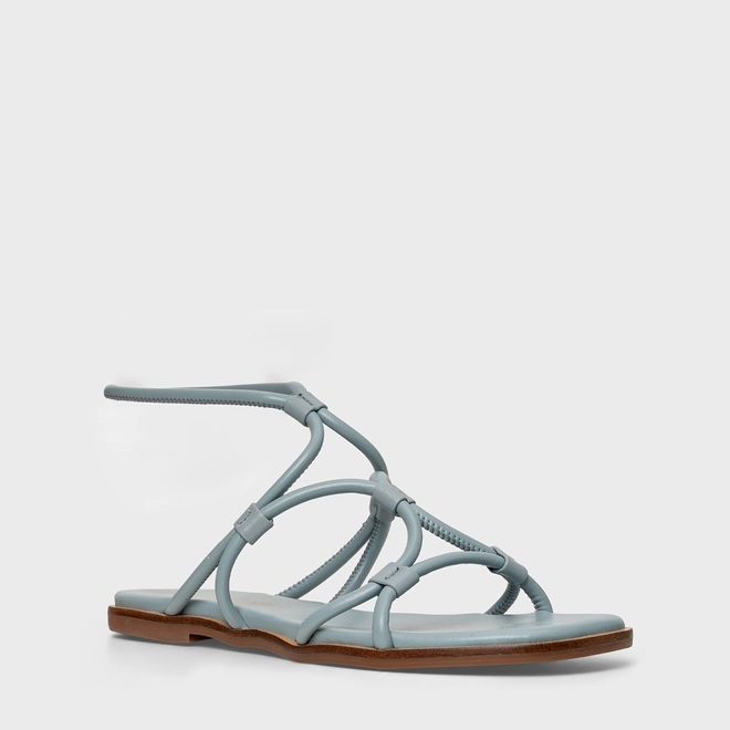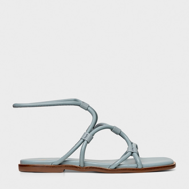 Sandália Flat Curve Couro Azul Silver Blue