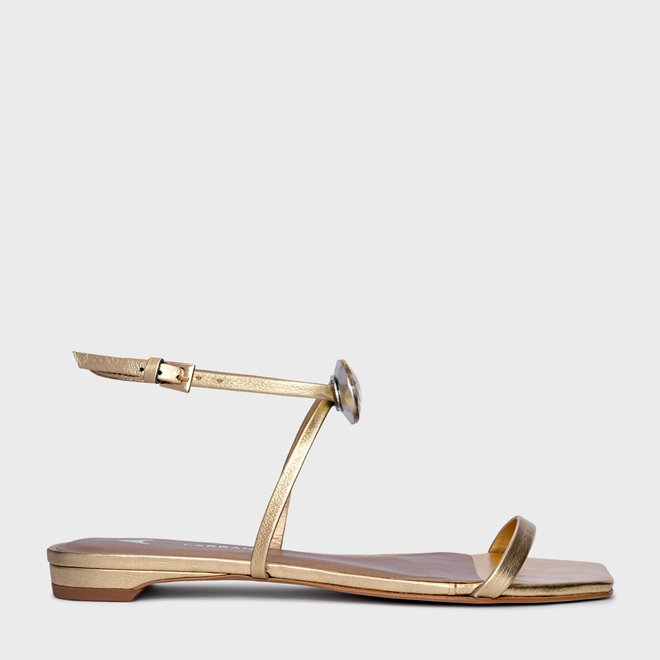 Sandália Flat Diamond Cristal Couro Metalizado Dourado