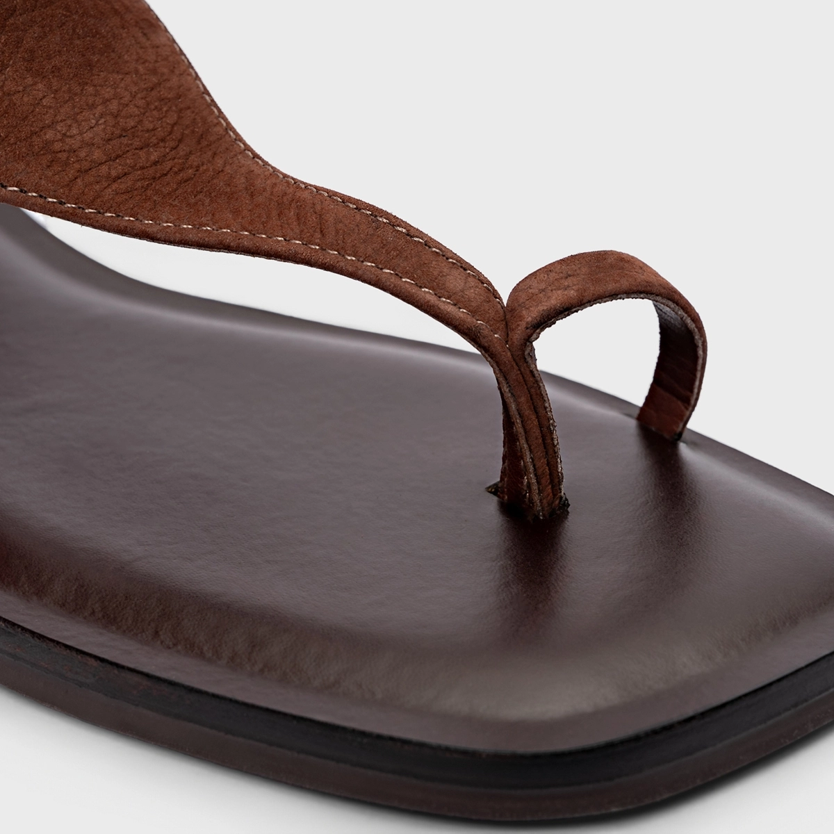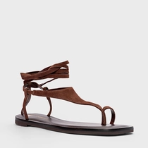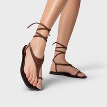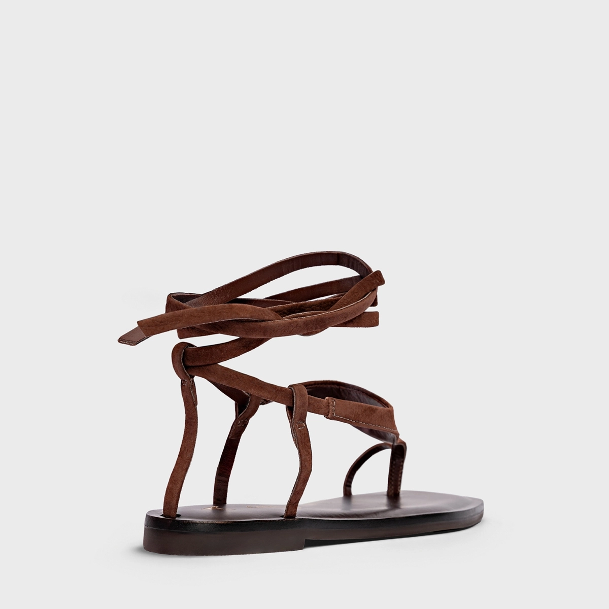 Sandália Flat Effortless Lace Up Couro Nobuck Marrom Brunette