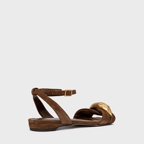 Sandália Flat Gold Couro Suede Marrom Brownie