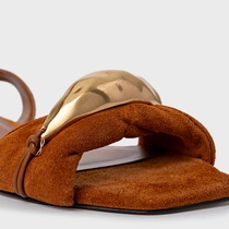 Sandália Flat Gold Couro Suede Marrom Ferrugem