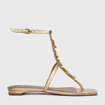 Por que apostar? A sandália é a expressão perfeita do verão sofisticado. As aplicações em formato de conchas douradas trazem um toque artesanal e luminoso, transformando o modelo em um acessório de destaque. Ideal para quem busca unir conforto, feminilidade e elegância em uma única peça. Como usar? Combine com vestidos leves de linho ou saias esvoaçantes para um look fresh e elegante. Também funciona perfeitamente com conjuntos de alfaiataria em tons neutros para um contraste moderno e chique. Um calçado versátil que vai do almoço à beira-mar a eventos mais refinados com naturalidade.