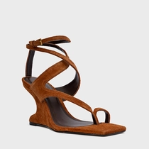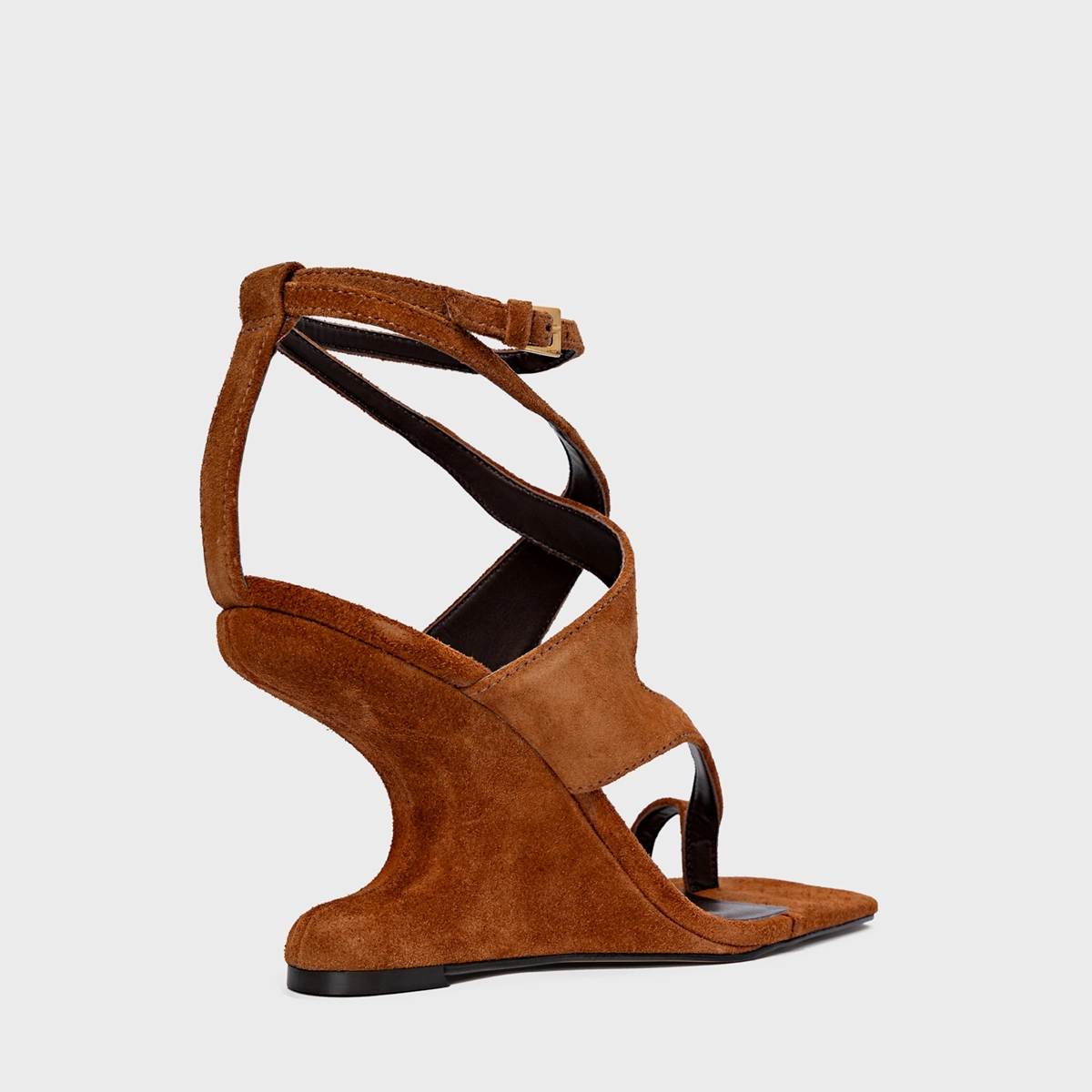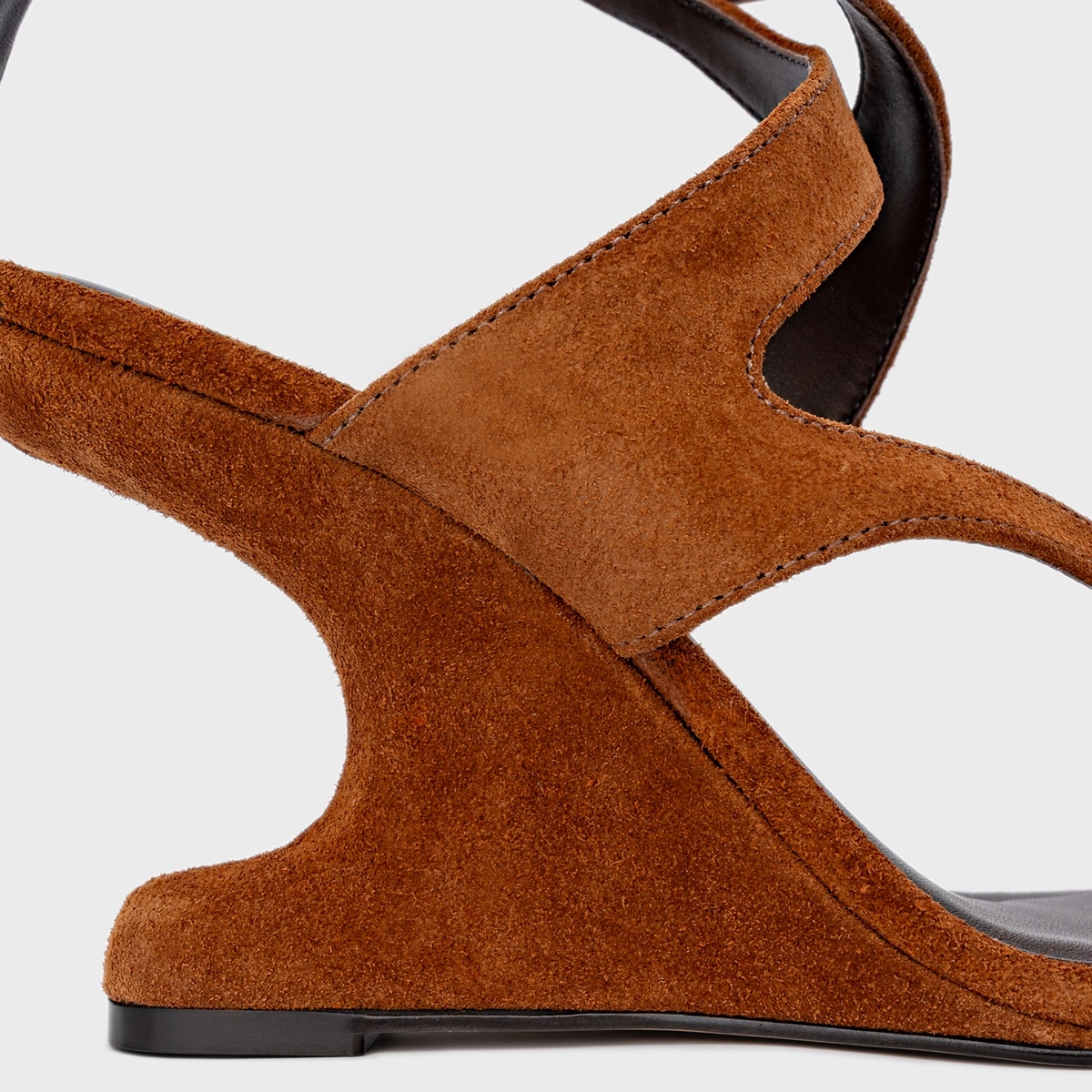Sandália Frame Salto Anabela Curve Marrom Ferrugem