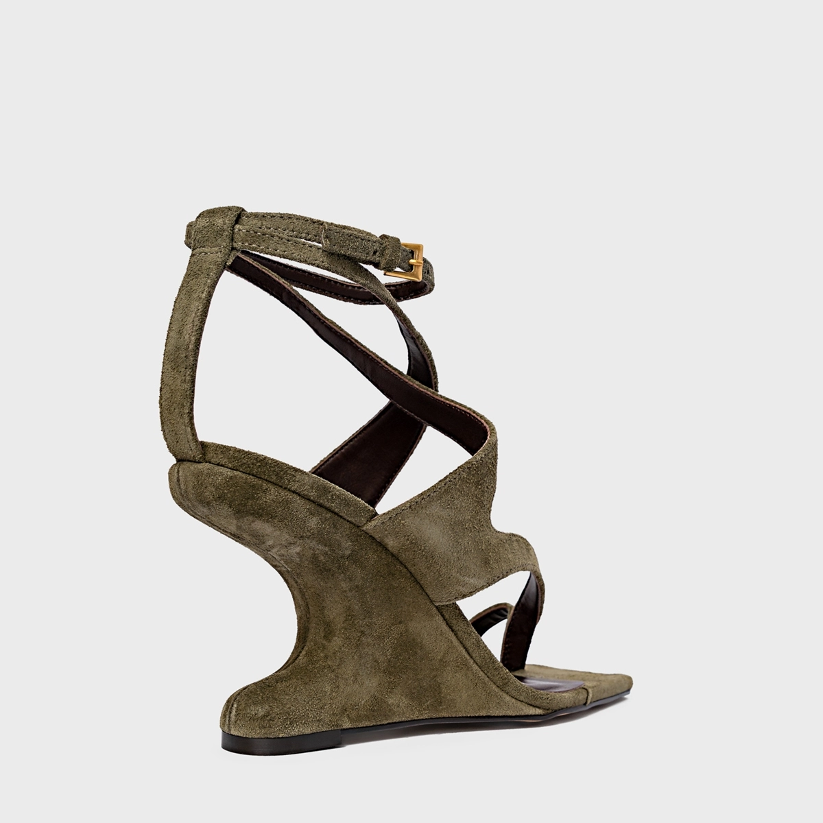 Sandália Frame Salto Anabela Curve Verde Army Green
