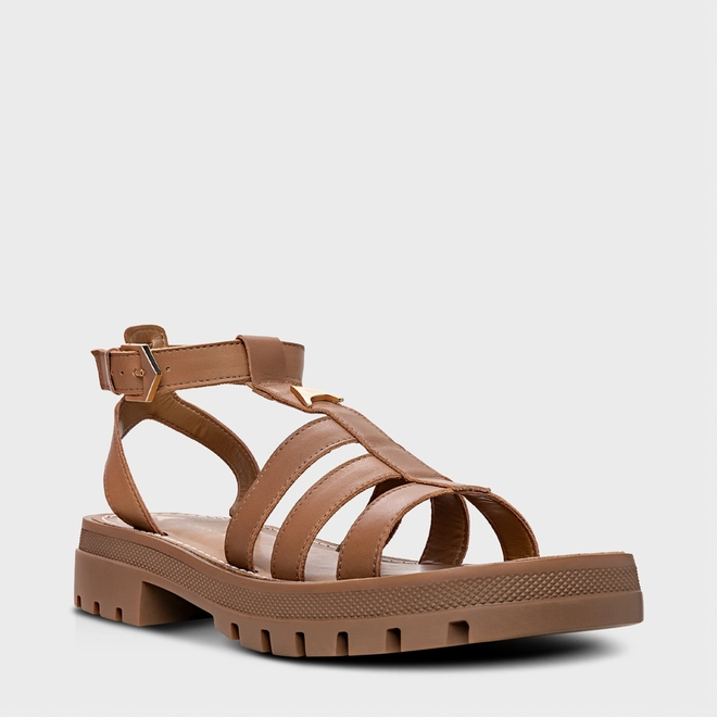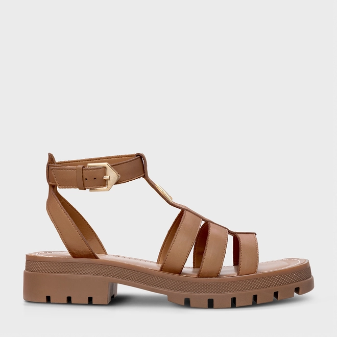 Sandália Gladiadora Tratorada Couro Marrom Honey