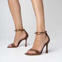 Por que apostar? Esta sandália é notável pelo seu detalhe metálico no tornozelo e pelo seu salto pino, perfeita para quem gosta de acabamentos únicos. Como usar? Combine com um corset e uma calça pantalona com brilho, obtendo assim um visual que se destaca e que se afasta completamente do convencional.