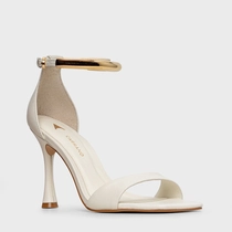Por que apostar? Esta sandália é notável pelo seu detalhe metálico no tornozelo e pelo seu salto pino, perfeita para quem gosta de acabamentos únicos. Como usar? Combine com um corset e uma calça pantalona com brilho, obtendo assim um visual que se destaca e que se afasta completamente do convencional.