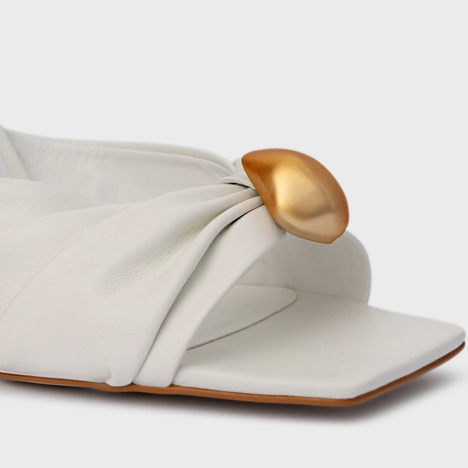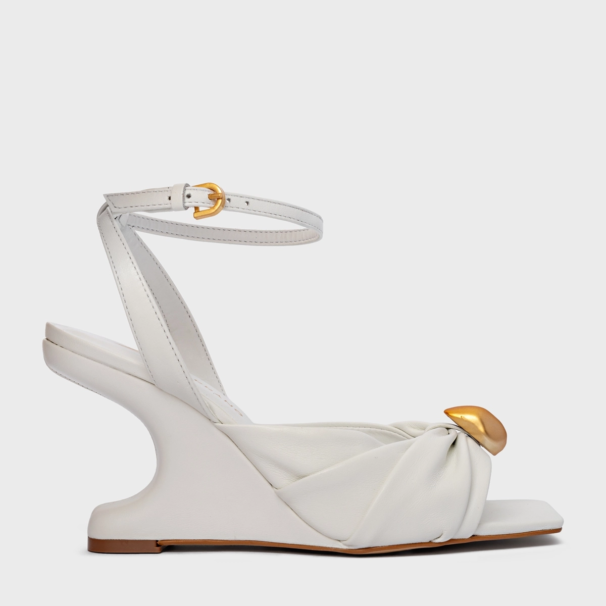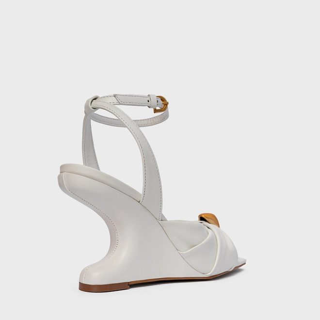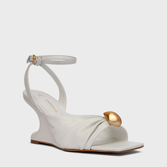 Sandália Gold Ball Anabela Couro Branco