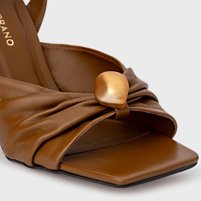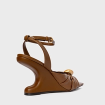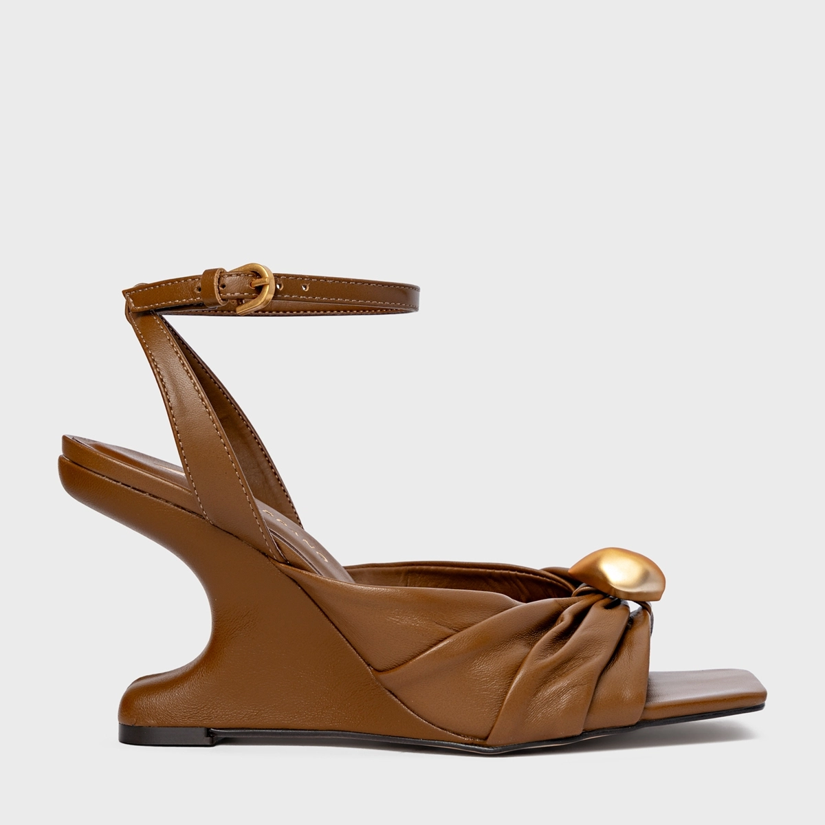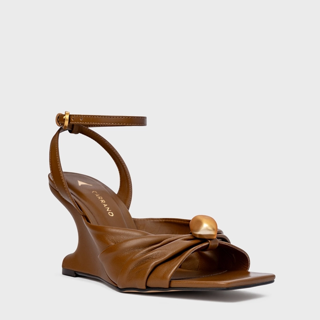 Sandália Gold Ball Anabela Couro Marrom Saddle