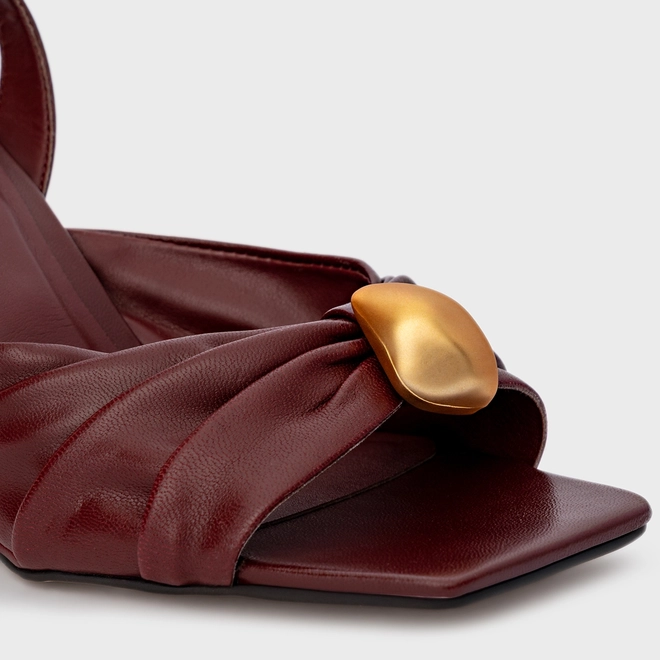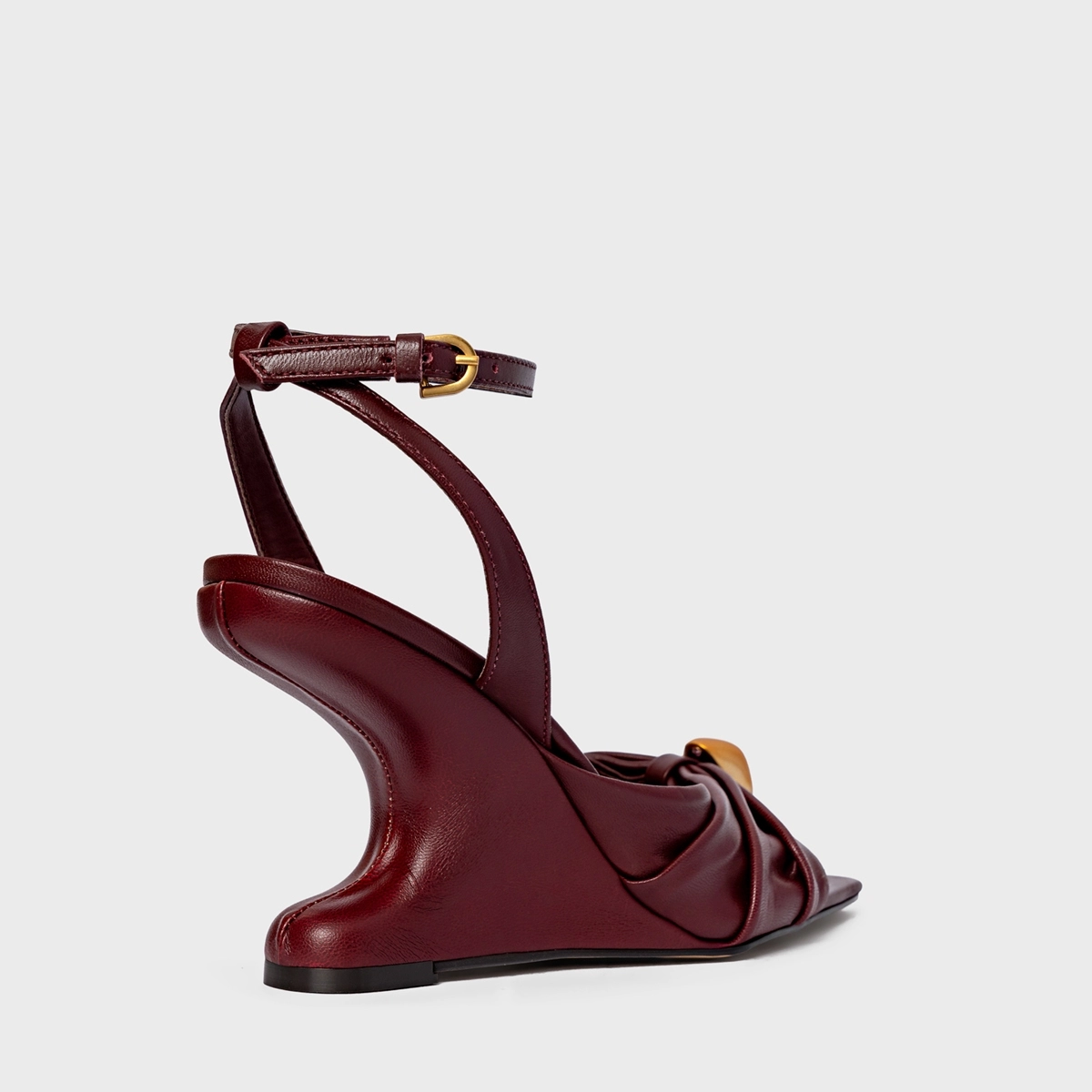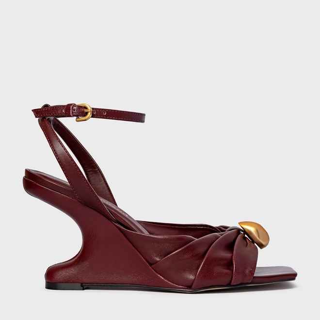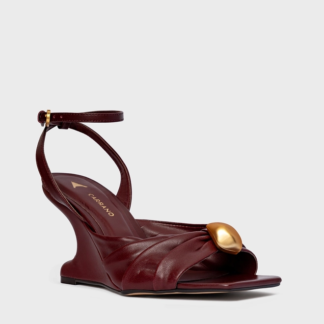 Sandália Gold Ball Anabela Couro Vinho Mahogany