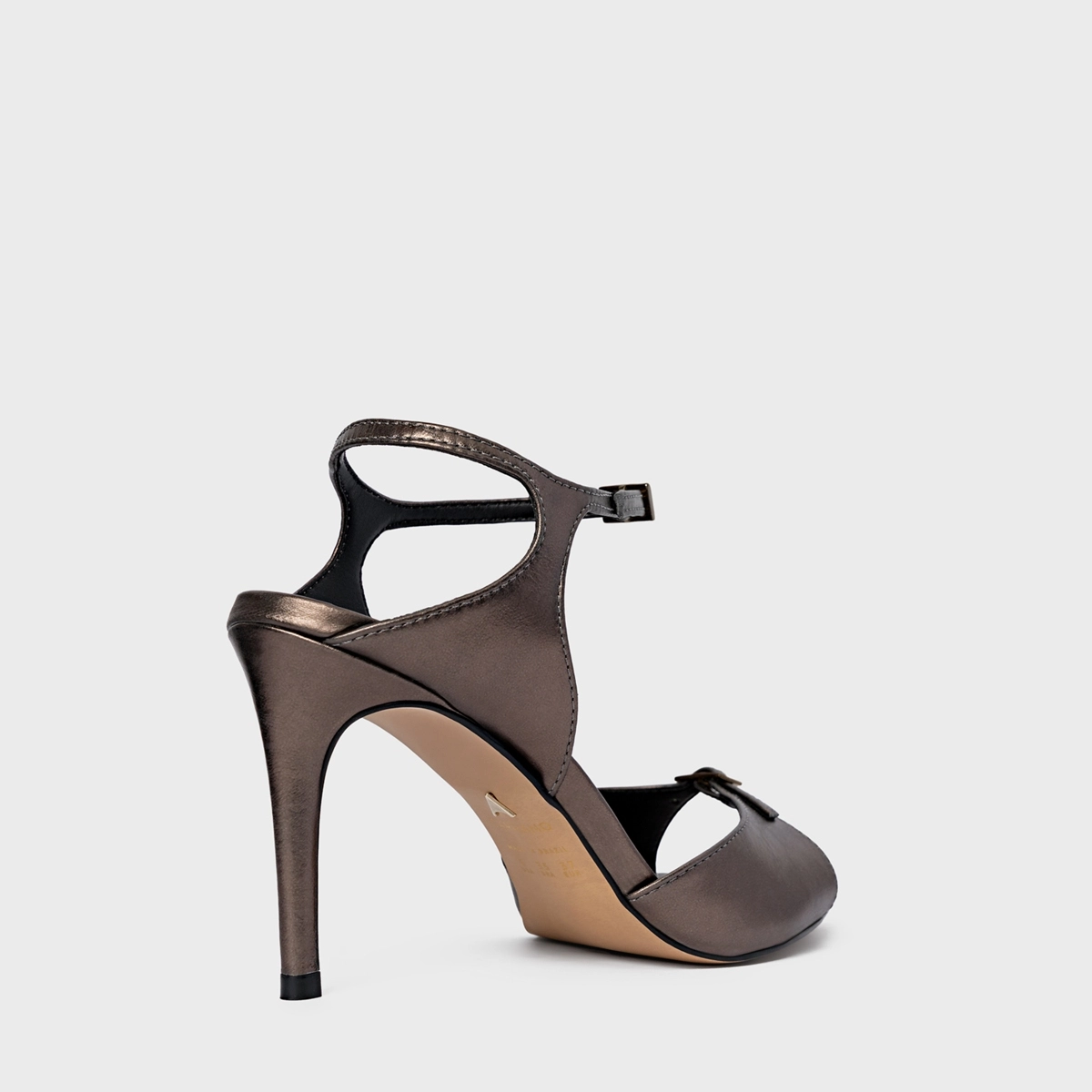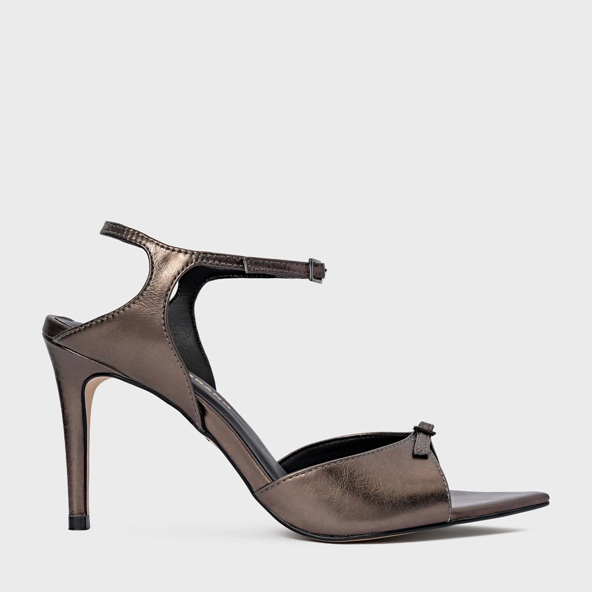 Sandália Heritage Bico Folha Salto Fino Metalizado Prata Old