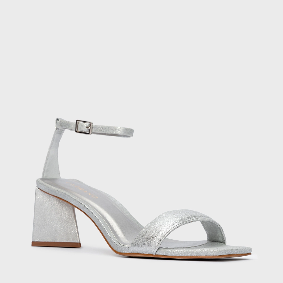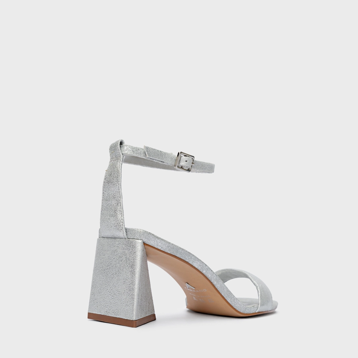 Sandália Holiday Salto Triangle Couro Metallic Prata