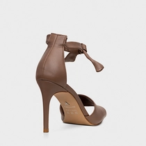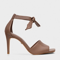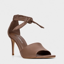 Sandália Lace Knot Salto Fino Couro Marrom Mocha