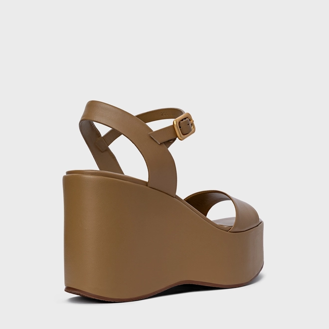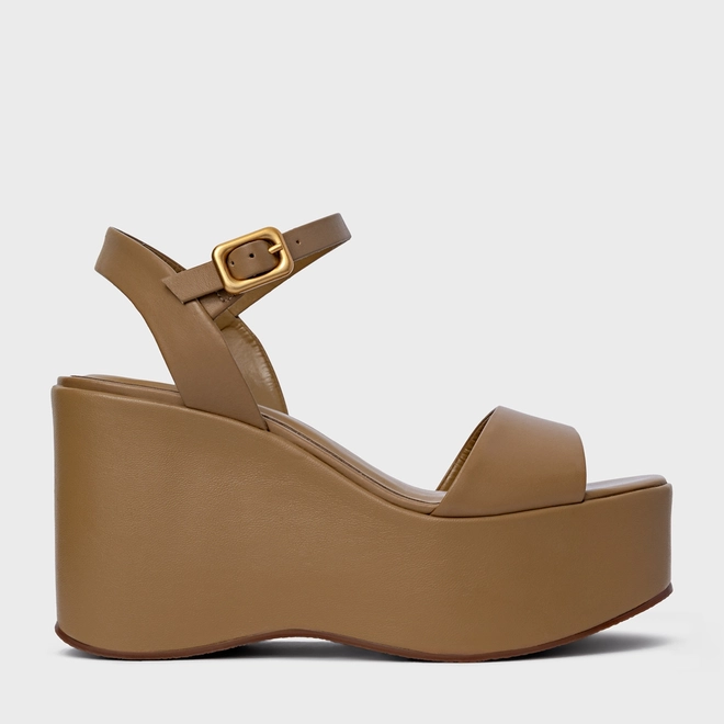 Sandália Maxi Anabela Couro Bege Almond