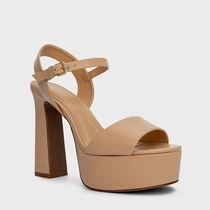 Sandália Maxi Plataforma Couro Bege Crema