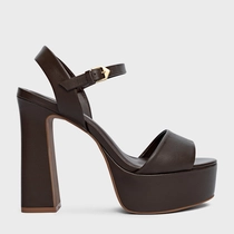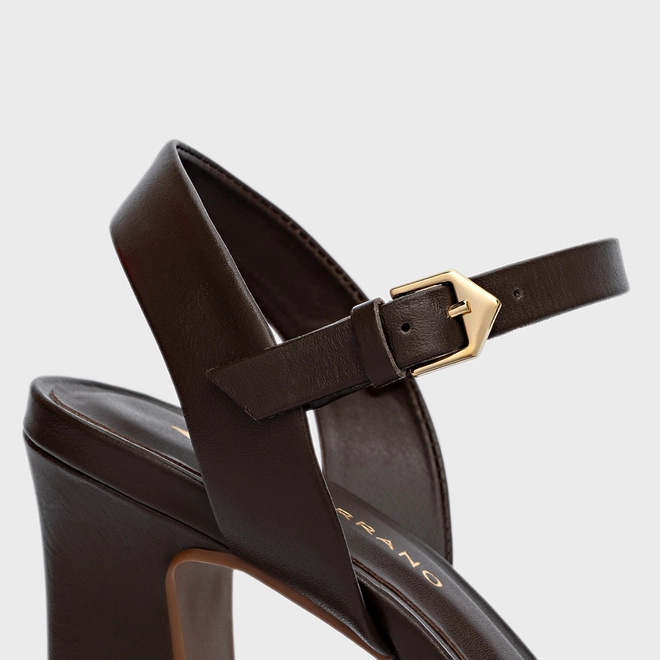 Sandália Maxi Plataforma Couro Marrom Dark Brown
