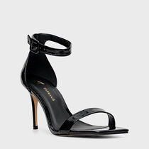 Sandália Minimal Salto Fino Couro Verniz Preto