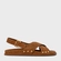 Sandália papete em couro suede. As tiras largas se cruzam dos dedos ao peito do pé, com tachas aplicadas na lateral e fechamento em fivela no calcanhar.