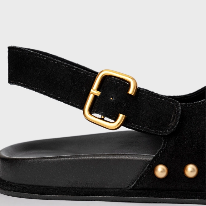 Sandália Papete Statement Studs Couro Suede Preto