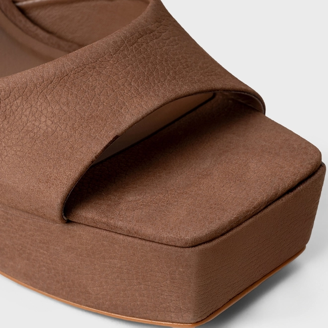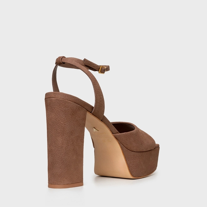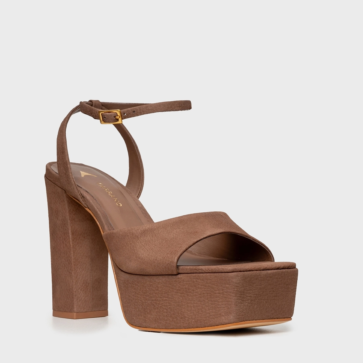 Sandália Plataforma Basic Couro Nobuck Marrom Mocha
