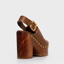 Sandália Plataforma Bold Wood Studs Couro Marrom Saddle