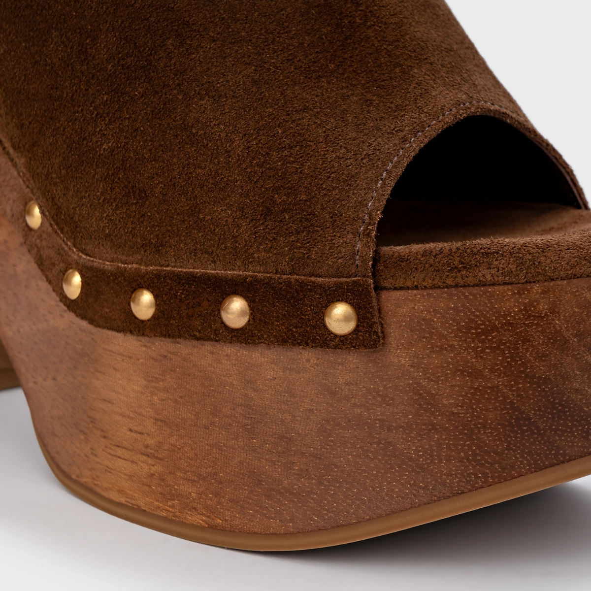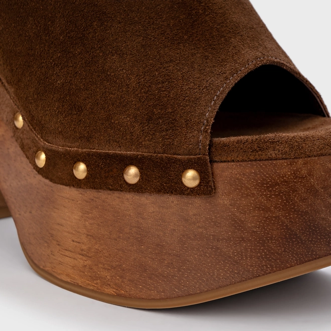Sandália Plataforma Bold Wood Studs Couro Suede Marrom Brownie