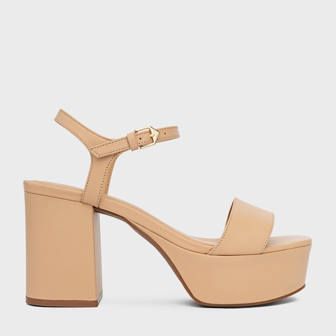 Sandália Plataforma Classic Couro Bege Crema