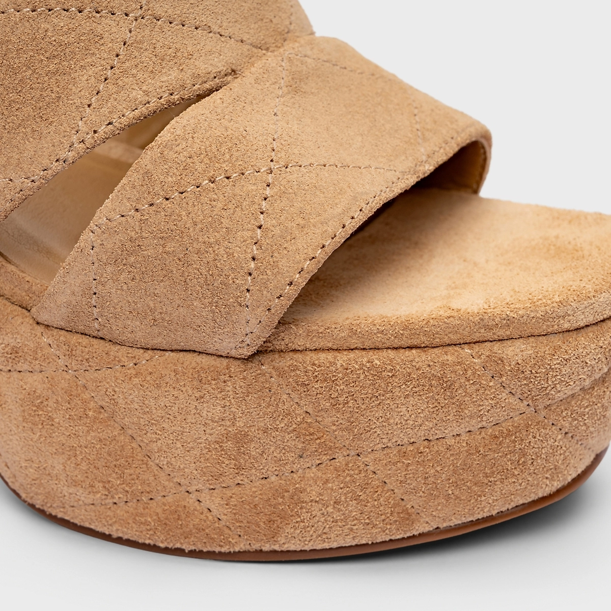 Sandália Plataforma Matelassê Salto Bloco Couro Suede Bege Toffee