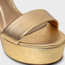 Sandália Plataforma Maxi Glam Couro Metalizado Dourado