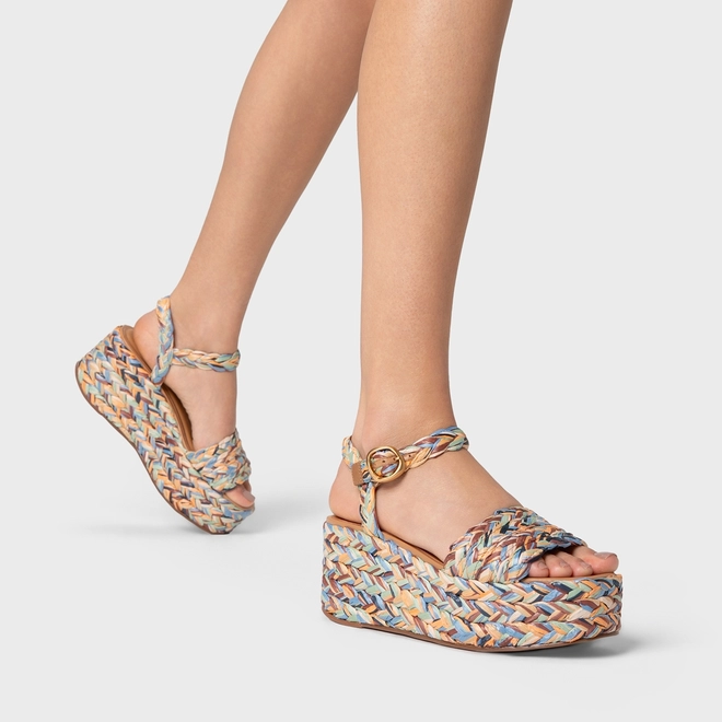 Sandália Plataforma Natural Flatform Rafia Tressê Color