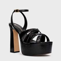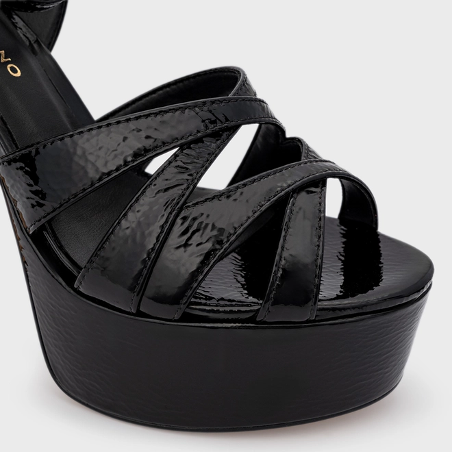 Sandália Plataforma Tiras Cruzadas Couro Verniz Preto