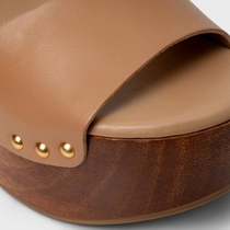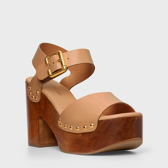 Sandália Plataforma Wood Studs Couro Bege Cookie