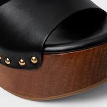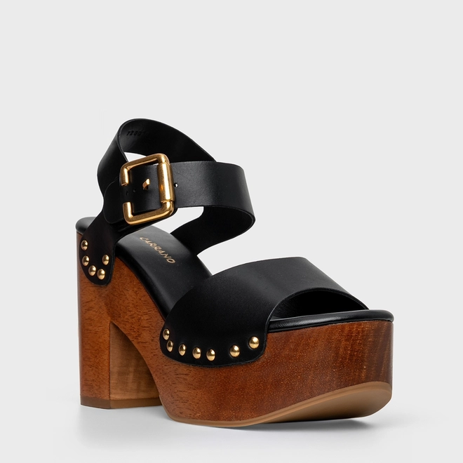 Sandália Plataforma Wood Studs Couro Preto