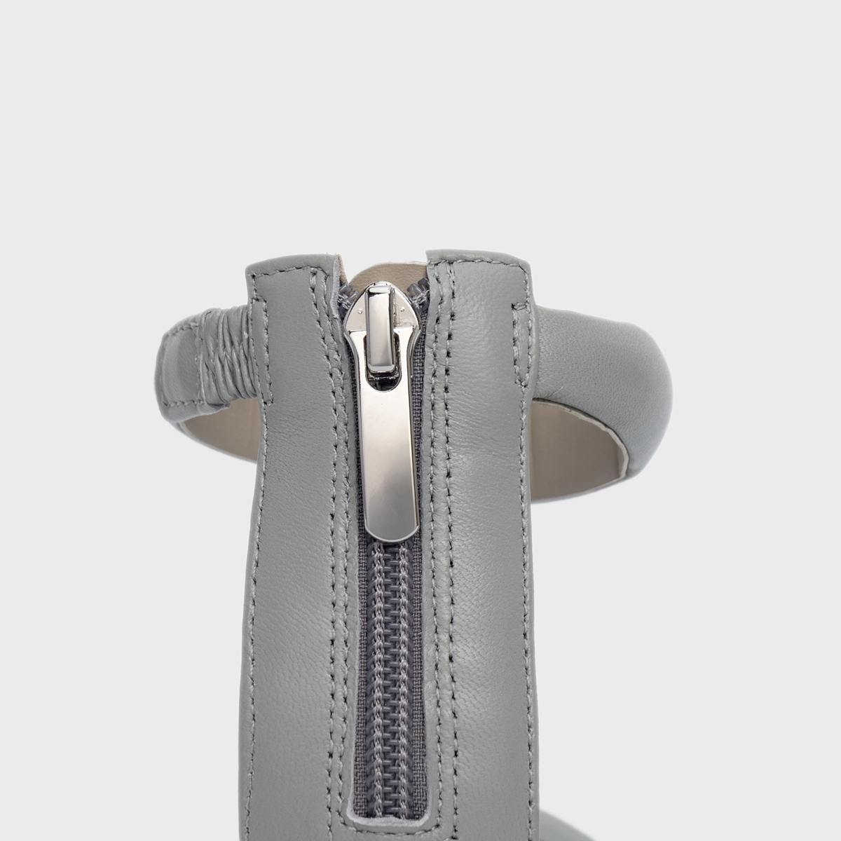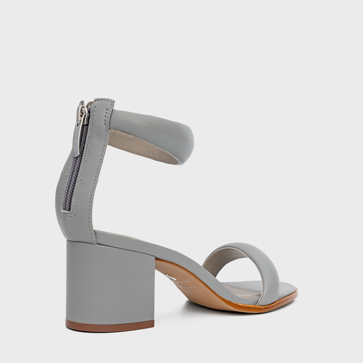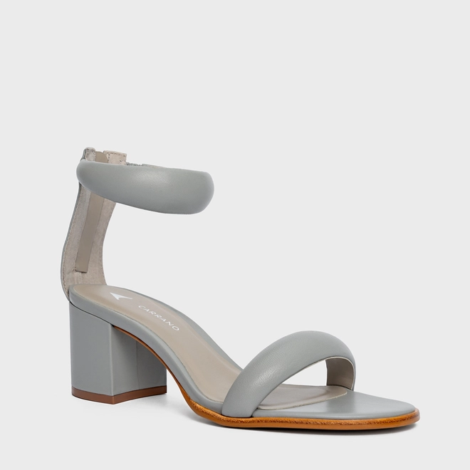 Sandália Puffy Tiras Salto Bloco Couro Cinza Cromo