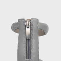 Sandália em couro. Esse modelo é mega estruturado, possui duas tiras maxi com efeito puffy, uma no cabedal e outra no tornozelo. Bico arredondado e salto baixo bloco. Fechamento em zíper.