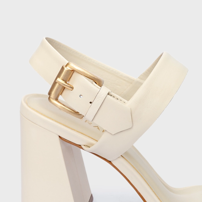 Sandália Salto Flare Couro Off White Panacota