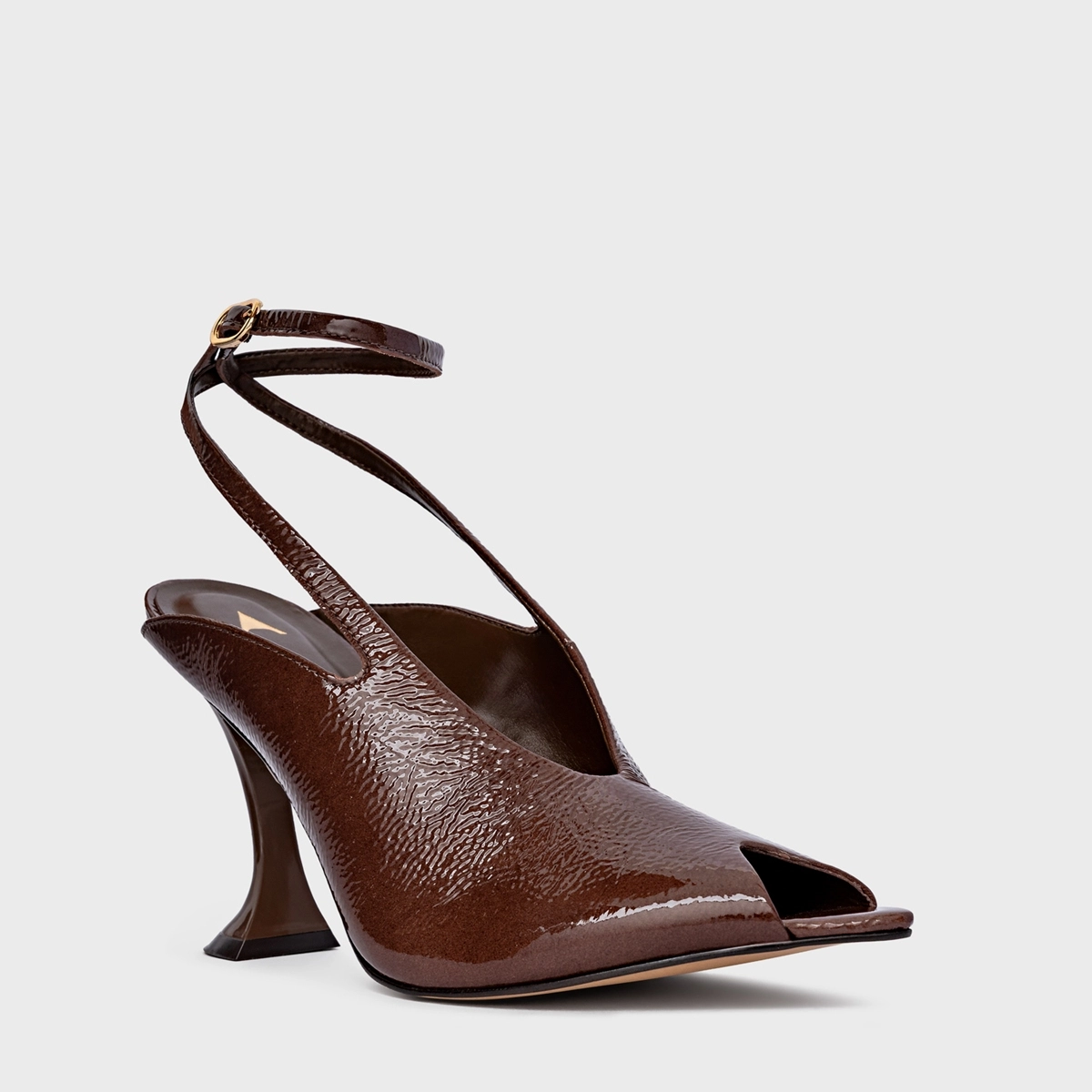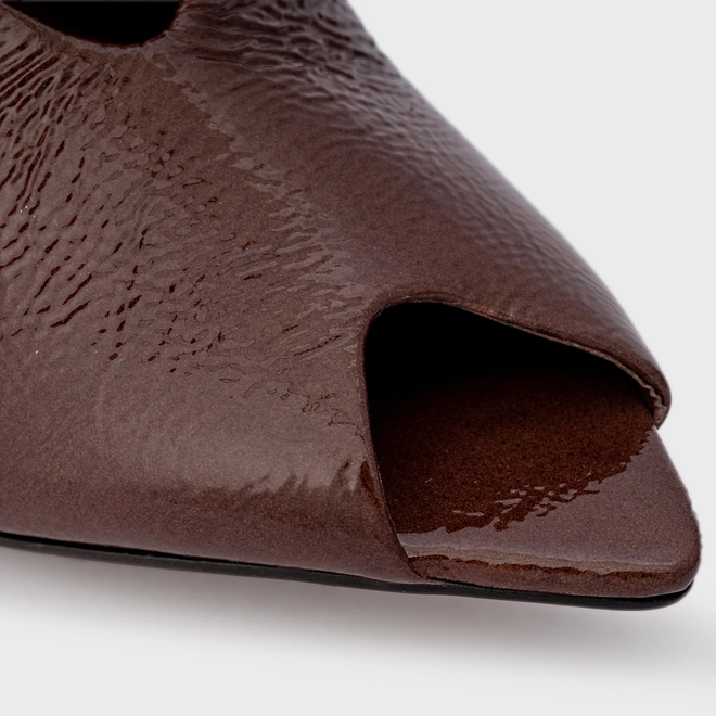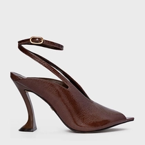 Sandália Salto Silhoutte Couro Verniz Marrom Brownie