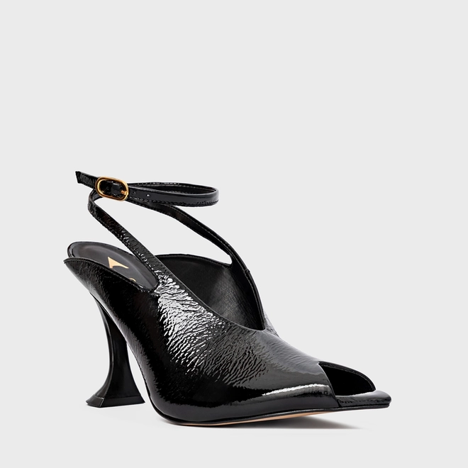 Por que apostar? Essa sandália ganha destaque pelo formato de seu salto, super fancy e que foge do óbvio. Como usar? T-shirt + calça slouchy e aquele blazer mais amplo. Uma pegada clássica para todo o evento acontecer nos pés.
