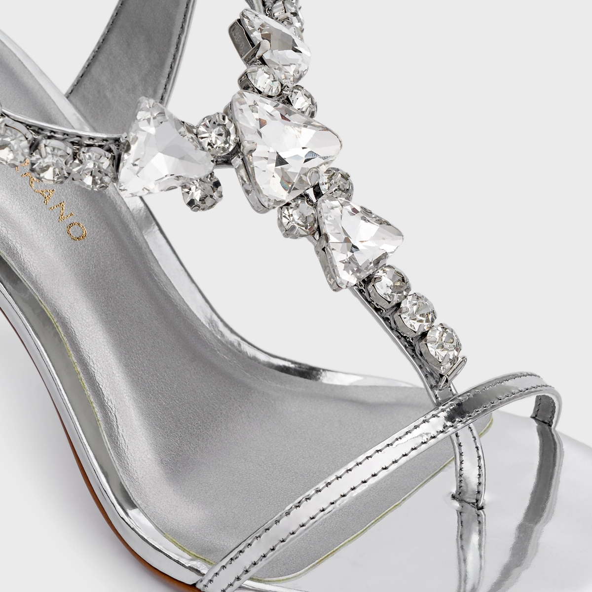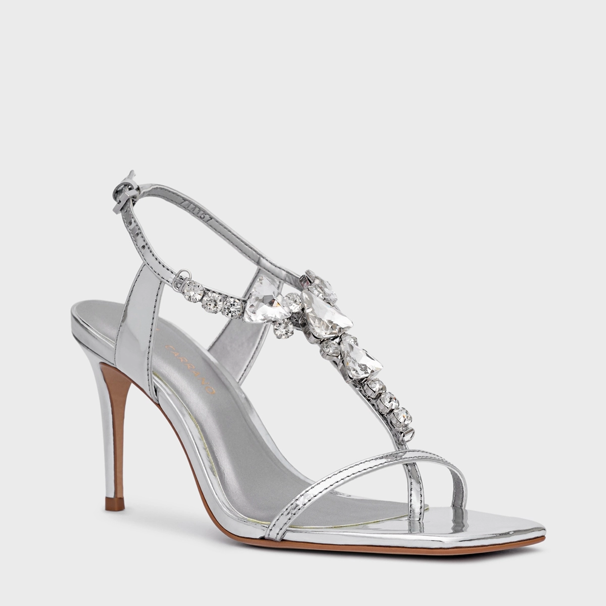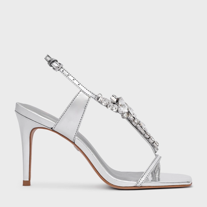 Sandália Shine Cristal Salto Fino Couro Spechio Prata