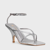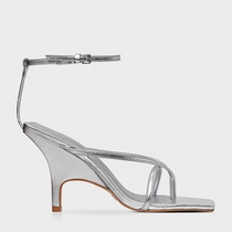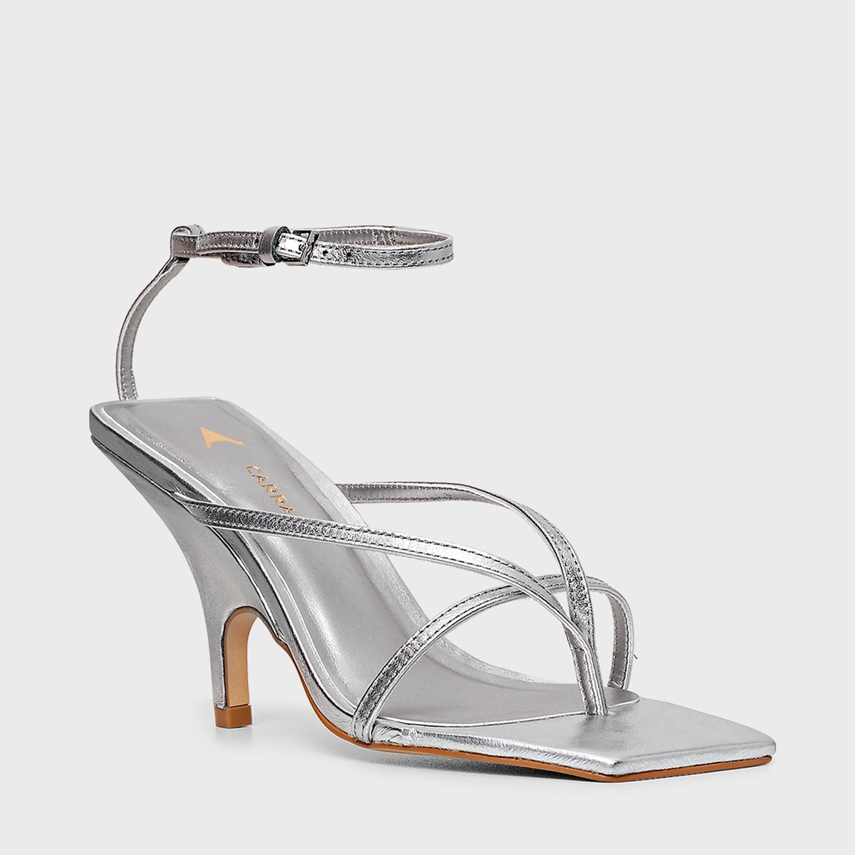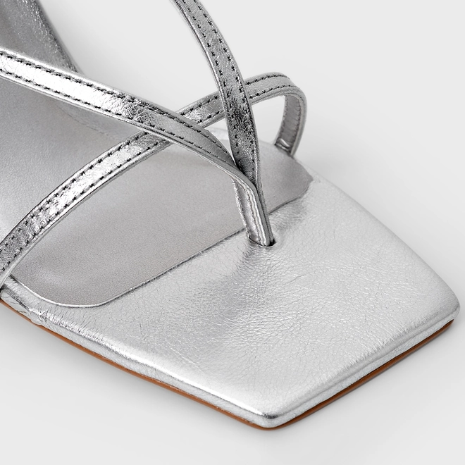 Sandália Slim Salto Fino Couro Metalizado Prata